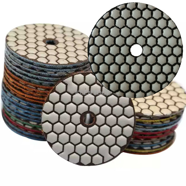 The flexible diamond polishing pads used for maintaining, repairing and revamping the granite, marble and artificial stone floor, liquid penetrant or hardener and densifier for floor. After rough and fine grinding and polishing with the polishing pads, the floor surface will show a mirror effect.